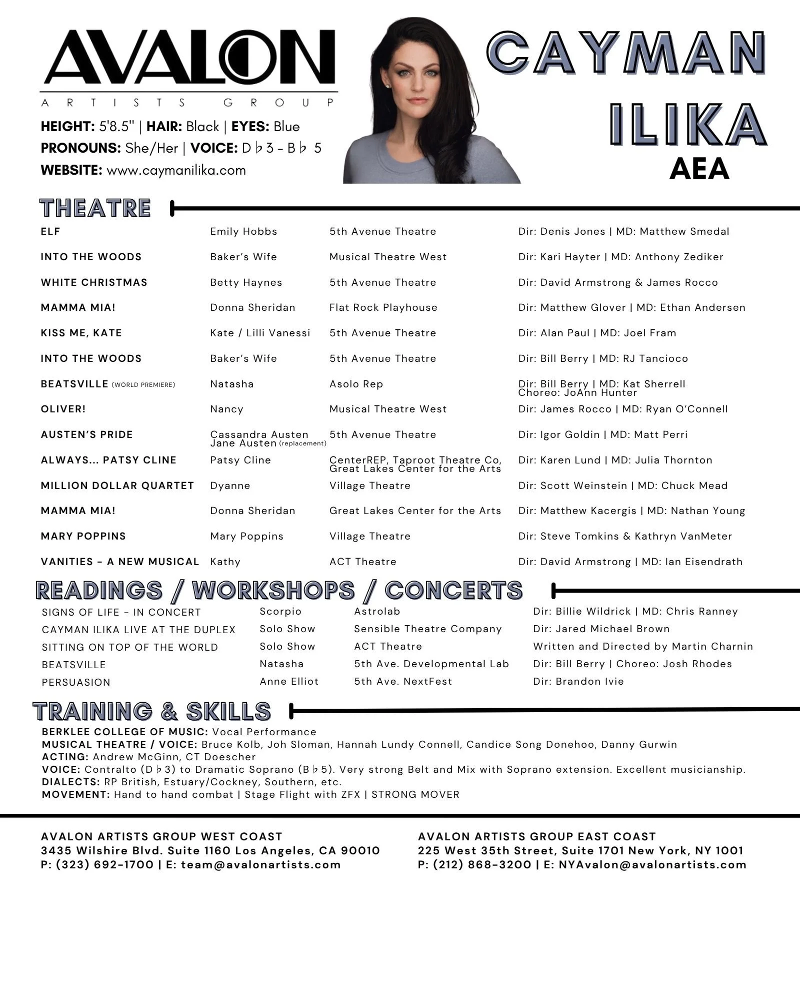 Gregory Award Nominee for Best Actress in a Musical for the role of Mary Poppins in Mary Poppins at Village Theatre