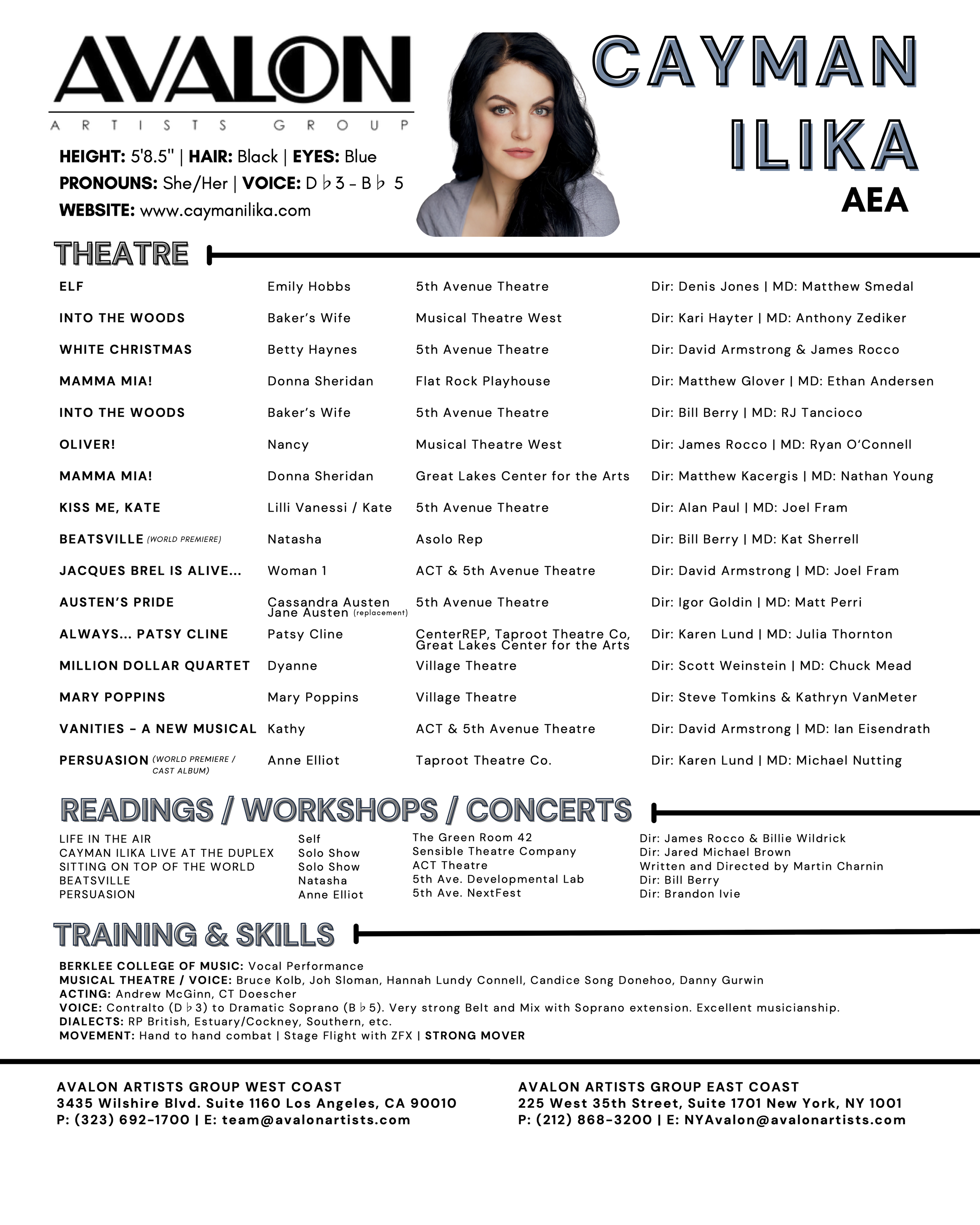 Gregory Award Nominee for Best Actress in a Musical for the role of Mary Poppins in Mary Poppins at Village Theatre